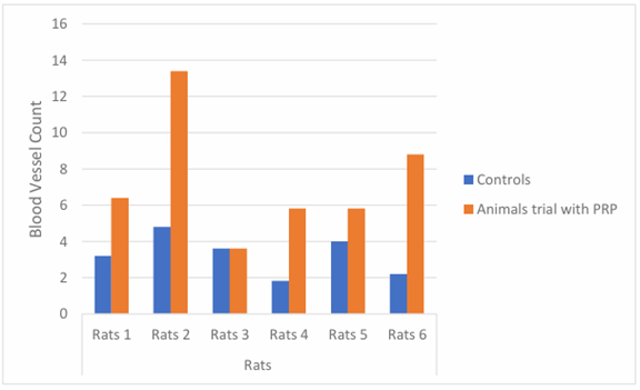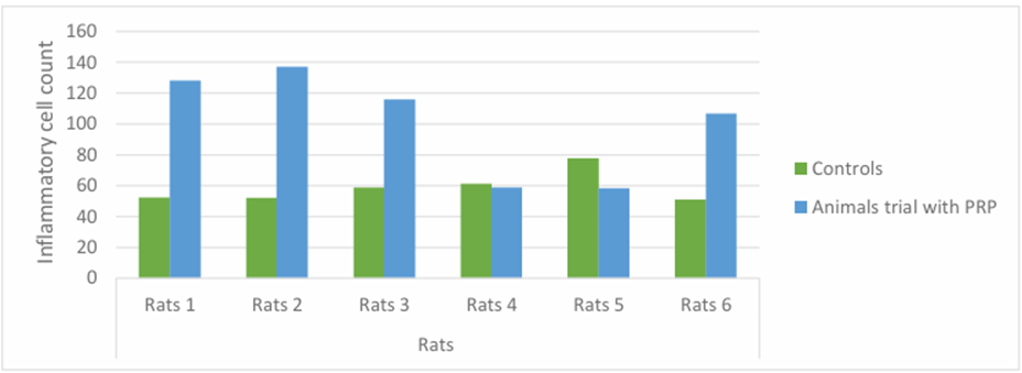 Mean number number of inflammatory cells and the number of blood vessels were also found to be twice as high compared to non-PRP mice at 100.8 and 7.3 (Figure 1-3 and Table 4).